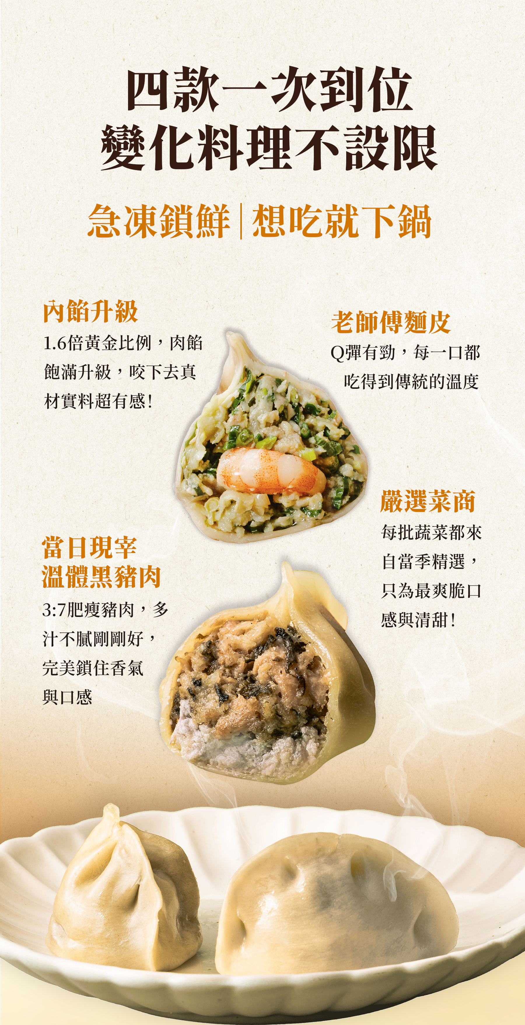 ●傳承老師傅桿出麵皮好勁道,皮薄餡滿、滋多味美,眷村兒時記憶裡的美味