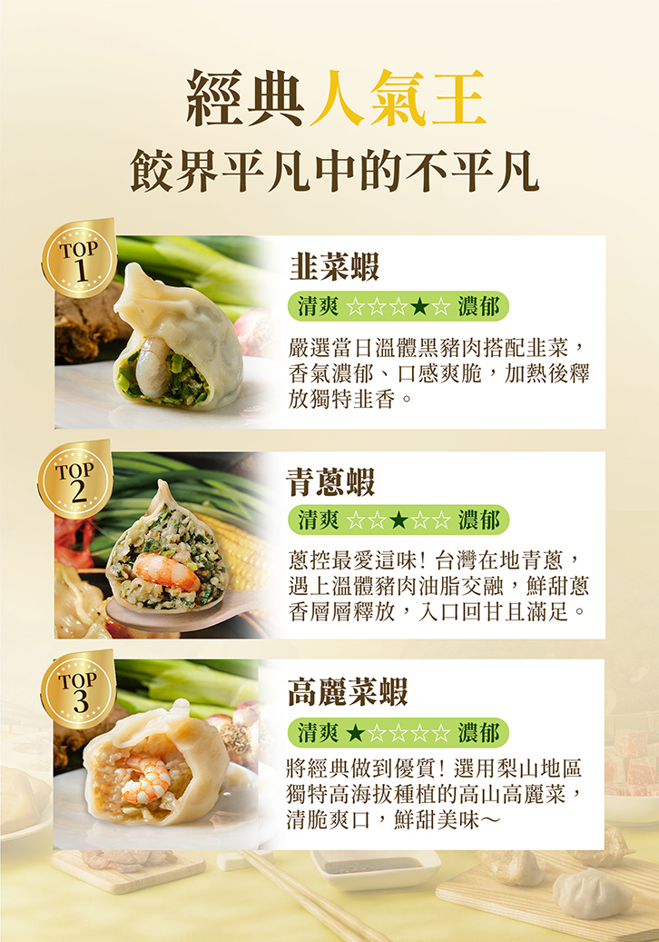 ●喬斯生活經典不敗:韭菜蝦、青蔥蝦、高麗菜蝦、日本A5和牛青蔥