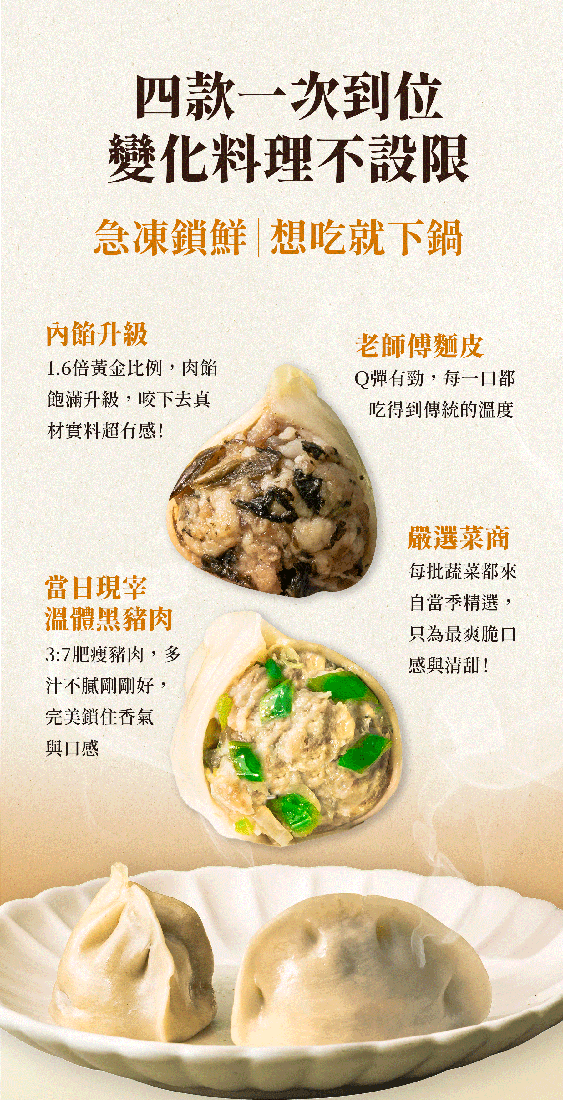 ●喬斯生活經典不敗2口味:黑豬肉韭菜、青蔥蝦仁